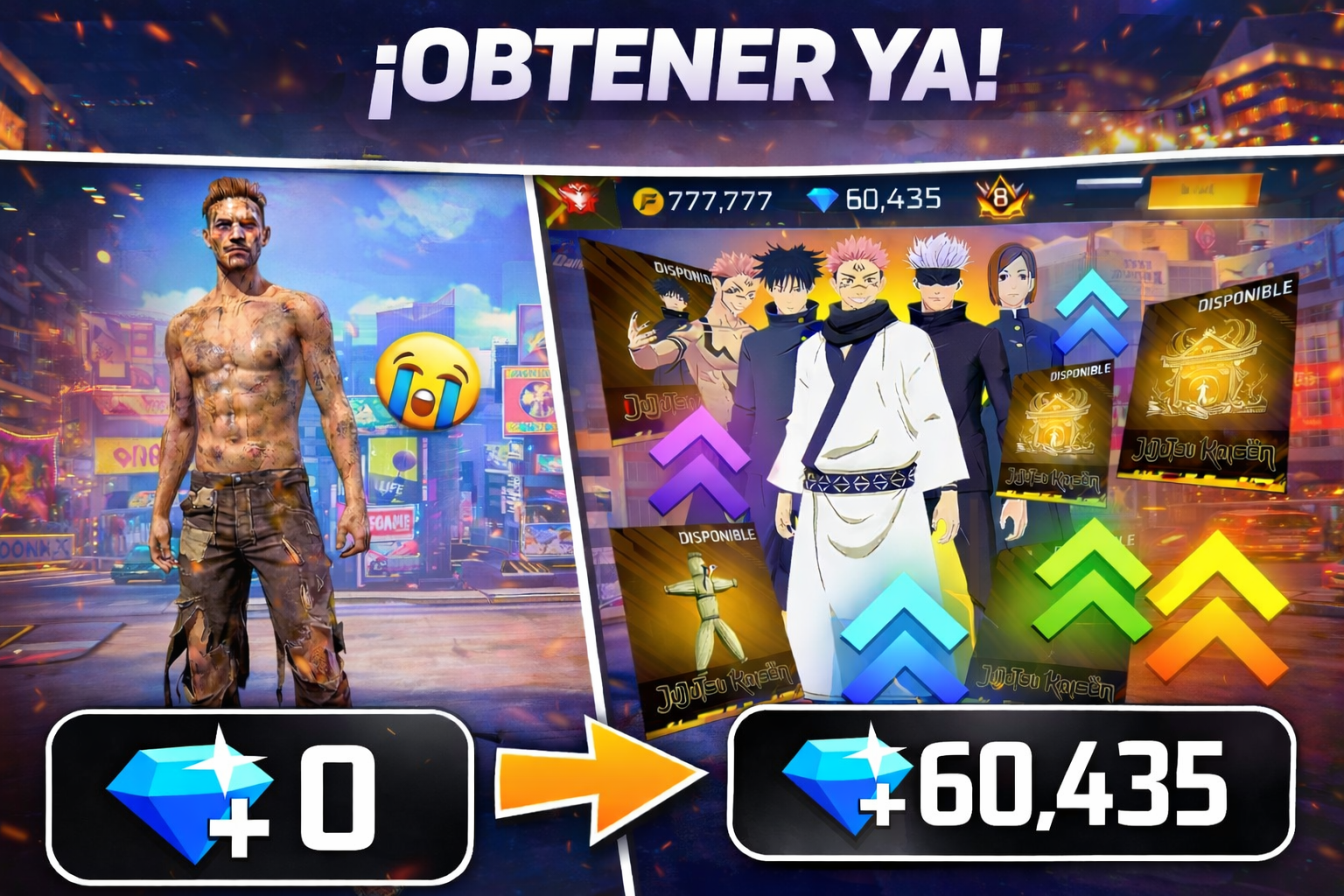 ¡Nueva colaboración Free Fire x Jujutsu Kaisen! - Reclama YAA!!